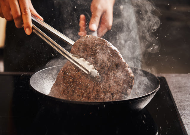 なんと言っても、ローストビーフは「火入れ」が全て。 まずは中心部まで真空低温調理で時間をかけてゆっくり火を入れて、最後に高温の鉄板で表面を焼き上げます。 この、1℃にまでこだわった火入れにより、感動する柔らかさと、肉の綺麗な断面色を実現しています。